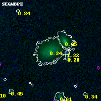 Object #1211 x,y = (1217, 3429) RA, Dec = (00:32:16.656, 18:08:48.48) = (8.06940, 18.14680) BPZ = 0.335 [0.247--0.455] type = 5.60 (Sbc_B10 - ES0_B10) chisq2 = 0.00 ODDS = 0.63 z_cluster = 0.396