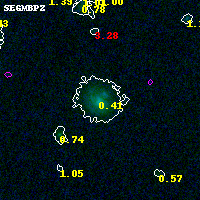 Object #1214 x,y = (1369, 3547) RA, Dec = (00:32:16.008, 18:08:55.68) = (8.06670, 18.14880) BPZ = 0.412 [0.103--0.490] type = 6.90 (Scd_B10 - Sbc_B10) chisq2 = 0.01 ODDS = 0.40 z_cluster = 0.396