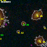Object #1219 x,y = (2125, 3456) RA, Dec = (00:32:12.840, 18:08:50.28) = (8.05350, 18.14730) BPZ = 0.362 [0.304--0.406] type = 3.70 (Ell4_A_0 - Ell5_A_0) chisq2 = 0.10 ODDS = 0.96 z_cluster = 0.396