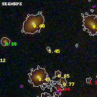 Object #1251 x,y = (2214, 3441) RA, Dec = (00:32:12.456, 18:08:49.20) = (8.05190, 18.14700) BPZ = 3.452 [0.179--3.724] type = 10.30 (SB3_B10 - SB11_A_0_l) chisq2 = 0.38 ODDS = 0.52 z_cluster = 0.396