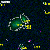 Object #1309 x,y = (1251, 3425) RA, Dec = (00:32:16.512, 18:08:48.48) = (8.06880, 18.14680) BPZ = 1.322 [0.126--2.201] type = 9.40 (SB2_B10 - SB3_B10) chisq2 = 0.02 ODDS = 0.16 z_cluster = 0.396