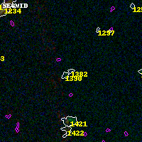 Object #1382 x,y = (3450, 3350) RA, Dec = (00:32:07.272, 18:08:43.80) = (8.03030, 18.14550) BPZ = 10.258 [0.762--10.371] type = 10.00 (SB3_B10) chisq2 = 900.00 ODDS = 0.76 z_cluster = 0.396
