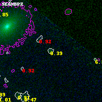 Object #1398 x,y = (4128, 3299) RA, Dec = (00:32:04.392, 18:08:40.92) = (8.01830, 18.14470) BPZ = 0.392 [0.129--3.606] type = 7.00 (Scd_B10) chisq2 = 0.12 ODDS = 0.33 z_cluster = 0.396