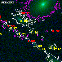 Object #1452 x,y = (4003, 3261) RA, Dec = (00:32:04.920, 18:08:38.40) = (8.02050, 18.14400) BPZ = 0.914 [0.746--1.451] type = 7.70 (SB1_B10 - Scd_B10) chisq2 = 0.35 ODDS = 0.43 z_cluster = 0.396