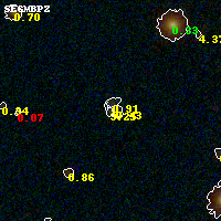 Object #1456 x,y = (2044, 3257) RA, Dec = (00:32:13.176, 18:08:38.40) = (8.05490, 18.14400) BPZ = 3.252 [0.130--3.583] type = 10.60 (SB11_A_0_l - SB3_B10) chisq2 = 0.64 ODDS = 0.51 z_cluster = 0.396