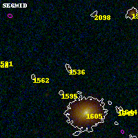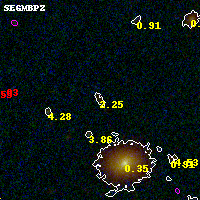Object #1536 x,y = (3126, 3221) RA, Dec = (00:32:08.616, 18:08:36.24) = (8.03590, 18.14340) BPZ = 2.255 [1.385--3.139] type = 9.60 (SB3_B10 - SB2_B10) chisq2 = 0.59 ODDS = 0.32 z_cluster = 0.396