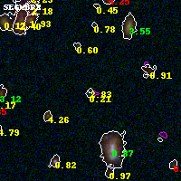 Object #1539 x,y = (1766, 3225) RA, Dec = (00:32:14.352, 18:08:36.24) = (8.05980, 18.14340) BPZ = 2.833 [0.292--3.390] type = 10.50 (SB11_A_0_l - SB3_B10) chisq2 = 0.53 ODDS = 0.32 z_cluster = 0.396