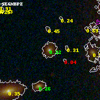 Object #1584 x,y = (2146, 3177) RA, Dec = (00:32:12.744, 18:08:33.36) = (8.05310, 18.14260) BPZ = 0.224 [0.180--0.255] type = 4.00 (Ell4_A_0) chisq2 = 0.27 ODDS = 0.98 z_cluster = 0.396