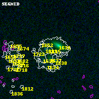 Object #1695 x,y = (3799, 3144) RA, Dec = (00:32:05.784, 18:08:31.56) = (8.02410, 18.14210) BPZ = 0.575 [0.225--1.208] type = 7.40 (Scd_B10 - SB1_B10) chisq2 = 0.00 ODDS = 0.42 z_cluster = 0.396