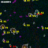 Object #1862 x,y = (3437, 3044) RA, Dec = (00:32:07.320, 18:08:25.44) = (8.03050, 18.14040) BPZ = 4.587 [0.464--5.020] type = 10.60 (SB11_A_0_l - SB3_B10) chisq2 = 0.51 ODDS = 0.62 z_cluster = 0.396