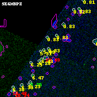 Object #199 x,y = (1800, 4618) RA, Dec = (00:32:14.208, 18:09:59.76) = (8.05920, 18.16660) BPZ = 0.826 [0.505--6.688] type = 5.30 (ES0_B10 - Sbc_B10) chisq2 = 0.04 ODDS = 0.12 z_cluster = 0.396