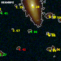 Object #2044 x,y = (1879, 2952) RA, Dec = (00:32:13.872, 18:08:20.04) = (8.05780, 18.13890) BPZ = 4.861 [4.723--5.084] type = 10.60 (SB11_A_0_l - SB3_B10) chisq2 = 0.47 ODDS = 0.98 z_cluster = 0.396