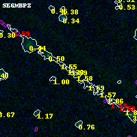 Object #2053 x,y = (4400, 2947) RA, Dec = (00:32:03.264, 18:08:19.68) = (8.01360, 18.13880) BPZ = 1.331 [0.488--2.736] type = 10.40 (SB3_B10 - SB11_A_0_l) chisq2 = 0.30 ODDS = 0.11 z_cluster = 0.396
