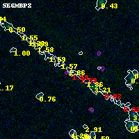 Object #2117 x,y = (4458, 2905) RA, Dec = (00:32:03.024, 18:08:17.16) = (8.01260, 18.13810) BPZ = 1.858 [0.326--3.077] type = 10.00 (SB3_B10) chisq2 = 0.28 ODDS = 0.12 z_cluster = 0.396