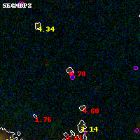 Object #2176 x,y = (2763, 2871) RA, Dec = (00:32:10.152, 18:08:15.00) = (8.04230, 18.13750) BPZ = 0.777 [0.559--0.945] type = 9.00 (SB2_B10) chisq2 = 2.16 ODDS = 0.55 z_cluster = 0.396