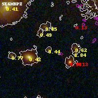Object #2220 x,y = (2419, 2849) RA, Dec = (00:32:11.592, 18:08:13.92) = (8.04830, 18.13720) BPZ = 0.440 [0.196--3.618] type = 8.00 (SB1_B10) chisq2 = 0.18 ODDS = 0.36 z_cluster = 0.396