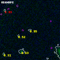 Object #2298 x,y = (829, 2811) RA, Dec = (00:32:18.288, 18:08:11.40) = (8.07620, 18.13650) BPZ = 0.949 [0.241--2.279] type = 9.70 (SB3_B10 - SB2_B10) chisq2 = 0.66 ODDS = 0.16 z_cluster = 0.396