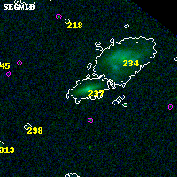 Object #237 x,y = (2473, 4516) RA, Dec = (00:32:11.376, 18:09:54.00) = (8.04740, 18.16500) BPZ = 0.384 [0.298--0.440] type = 5.10 (ES0_B10 - Sbc_B10) chisq2 = 0.00 ODDS = 0.85 z_cluster = 0.396