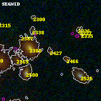 Object #2427 x,y = (2815, 2751) RA, Dec = (00:32:09.936, 18:08:07.80) = (8.04140, 18.13550) BPZ = 0.768 [0.226--3.895] type = 9.00 (SB2_B10) chisq2 = 0.35 ODDS = 0.33 z_cluster = 0.396