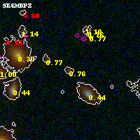 Object #2466 x,y = (2848, 2735) RA, Dec = (00:32:09.792, 18:08:07.08) = (8.04080, 18.13530) BPZ = 0.758 [0.492--4.204] type = 8.10 (SB1_B10 - SB2_B10) chisq2 = 0.22 ODDS = 0.49 z_cluster = 0.396