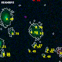 Object #2666 x,y = (1392, 2658) RA, Dec = (00:32:15.912, 18:08:02.40) = (8.06630, 18.13400) BPZ = 0.504 [0.164--3.301] type = 7.90 (SB1_B10 - Scd_B10) chisq2 = 0.00 ODDS = 0.24 z_cluster = 0.396
