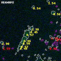 Object #2683 x,y = (3819, 2620) RA, Dec = (00:32:05.712, 18:07:59.88) = (8.02380, 18.13330) BPZ = 0.454 [0.162--3.544] type = 7.90 (SB1_B10 - Scd_B10) chisq2 = 0.03 ODDS = 0.19 z_cluster = 0.396