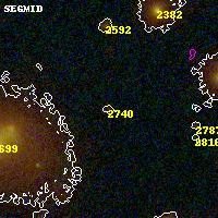 Object #2740 x,y = (2645, 2604) RA, Dec = (00:32:10.656, 18:07:59.16) = (8.04440, 18.13310) BPZ = 0.601 [0.140--4.034] type = 9.20 (SB2_B10 - SB3_B10) chisq2 = 0.12 ODDS = 0.20 z_cluster = 0.396