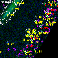 Object #2853 x,y = (4559, 2563) RA, Dec = (00:32:02.592, 18:07:56.64) = (8.01080, 18.13240) BPZ = 5.686 [5.317--5.953] type = 9.40 (SB2_B10 - SB3_B10) chisq2 = 0.00 ODDS = 0.90 z_cluster = 0.396