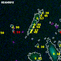 Object #2888 x,y = (3785, 2566) RA, Dec = (00:32:05.856, 18:07:56.64) = (8.02440, 18.13240) BPZ = 0.490 [0.151--2.128] type = 7.60 (SB1_B10 - Scd_B10) chisq2 = 0.01 ODDS = 0.29 z_cluster = 0.396