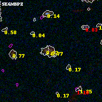Object #3065 x,y = (2105, 2450) RA, Dec = (00:32:12.912, 18:07:49.80) = (8.05380, 18.13050) BPZ = 0.765 [0.585--0.872] type = 8.50 (SB2_B10 - SB1_B10) chisq2 = 0.06 ODDS = 0.68 z_cluster = 0.396