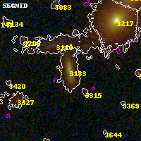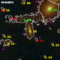 Object #3183 x,y = (2646, 2355) RA, Dec = (00:32:10.632, 18:07:44.04) = (8.04430, 18.12890) BPZ = 0.097 [0.061--0.339] type = 4.10 (Ell4_A_0 - ES0_B10) chisq2 = 0.29 ODDS = 0.72 z_cluster = 0.396