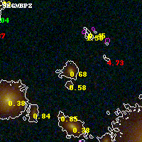 Object #3272 x,y = (3221, 2353) RA, Dec = (00:32:08.232, 18:07:44.04) = (8.03430, 18.12890) BPZ = 0.676 [0.431--0.756] type = 7.50 (SB1_B10 - Scd_B10) chisq2 = 0.09 ODDS = 0.67 z_cluster = 0.396