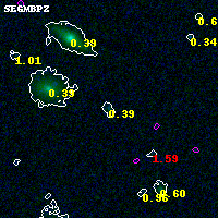 Object #3289 x,y = (1093, 2355) RA, Dec = (00:32:17.184, 18:07:44.04) = (8.07160, 18.12890) BPZ = 0.390 [0.285--3.021] type = 11.00 (SB11_A_0_l) chisq2 = 0.14 ODDS = 0.06 z_cluster = 0.396