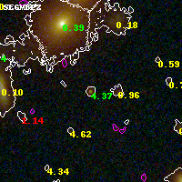 Object #3296 x,y = (2744, 2351) RA, Dec = (00:32:10.224, 18:07:44.04) = (8.04260, 18.12890) BPZ = 4.366 [4.251--4.472] type = 8.80 (SB2_B10 - SB1_B10) chisq2 = 0.58 ODDS = 1.00 z_cluster = 0.396