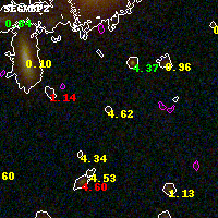 Object #3369 x,y = (2721, 2309) RA, Dec = (00:32:10.320, 18:07:41.52) = (8.04300, 18.12820) BPZ = 4.620 [4.147--5.011] type = 11.00 (SB11_A_0_l) chisq2 = 0.29 ODDS = 0.75 z_cluster = 0.396