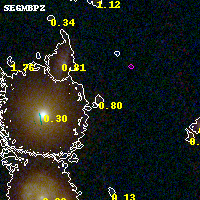 Object #3417 x,y = (3523, 2284) RA, Dec = (00:32:06.960, 18:07:39.72) = (8.02900, 18.12770) BPZ = 0.795 [0.142--3.045] type = 10.10 (SB3_B10 - SB11_A_0_l) chisq2 = 0.43 ODDS = 0.12 z_cluster = 0.396