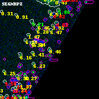 Object #3425 x,y = (4446, 2281) RA, Dec = (00:32:03.072, 18:07:39.72) = (8.01280, 18.12770) BPZ = 0.461 [0.325--3.643] type = 5.10 (ES0_B10 - Sbc_B10) chisq2 = 0.00 ODDS = 0.33 z_cluster = 0.396