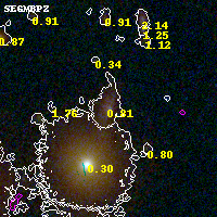 Object #3566 x,y = (3486, 2322) RA, Dec = (00:32:07.104, 18:07:42.24) = (8.02960, 18.12840) BPZ = 0.815 [0.676--0.895] type = 8.70 (SB2_B10 - SB1_B10) chisq2 = 0.01 ODDS = 0.71 z_cluster = 0.396