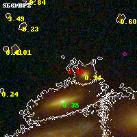 Object #3633 x,y = (2535, 2179) RA, Dec = (00:32:11.112, 18:07:33.60) = (8.04630, 18.12600) BPZ = 0.906 [0.107--2.648] type = 11.00 (SB11_A_0_l) chisq2 = 2.94 ODDS = 0.20 z_cluster = 0.396