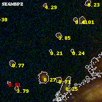 Object #3668 x,y = (2396, 2146) RA, Dec = (00:32:11.688, 18:07:31.44) = (8.04870, 18.12540) BPZ = 0.207 [0.104--4.277] type = 10.80 (SB11_A_0_l - SB3_B10) chisq2 = 0.34 ODDS = 0.24 z_cluster = 0.396