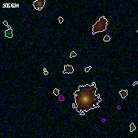 Object #3739 x,y = (1626, 2106) RA, Dec = (00:32:14.928, 18:07:29.28) = (8.06220, 18.12480) BPZ = 0.757 [0.458--0.927] type = 9.00 (SB2_B10) chisq2 = 0.97 ODDS = 0.39 z_cluster = 0.396