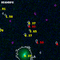 Object #3741 x,y = (568, 2111) RA, Dec = (00:32:19.392, 18:07:29.64) = (8.08080, 18.12490) BPZ = 3.648 [0.208--4.120] type = 9.70 (SB3_B10 - SB2_B10) chisq2 = 0.30 ODDS = 0.22 z_cluster = 0.396