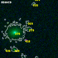 Object #379 x,y = (2600, 4317) RA, Dec = (00:32:10.848, 18:09:41.76) = (8.04520, 18.16160) BPZ = 0.725 [0.494--1.559] type = 7.60 (SB1_B10 - Scd_B10) chisq2 = 0.01 ODDS = 0.26 z_cluster = 0.396