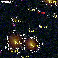 Object #3970 x,y = (1722, 1951) RA, Dec = (00:32:14.544, 18:07:19.92) = (8.06060, 18.12220) BPZ = 0.169 [0.100--4.537] type = 11.00 (SB11_A_0_l) chisq2 = 0.94 ODDS = 0.29 z_cluster = 0.396