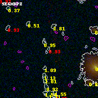 Object #3972 x,y = (1579, 1946) RA, Dec = (00:32:15.144, 18:07:19.56) = (8.06310, 18.12210) BPZ = 0.927 [0.538--2.318] type = 11.00 (SB11_A_0_l) chisq2 = 6.02 ODDS = 0.29 z_cluster = 0.396