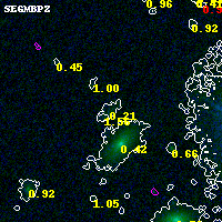 Object #3984 x,y = (1113, 1937) RA, Dec = (00:32:17.088, 18:07:19.20) = (8.07120, 18.12200) BPZ = 0.208 [0.090--2.811] type = 9.70 (SB3_B10 - SB2_B10) chisq2 = 0.03 ODDS = 0.10 z_cluster = 0.396