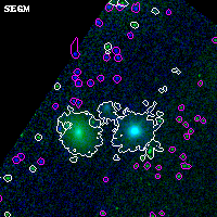 Object #40 x,y = (2001, 4862) RA, Dec = (00:32:13.368, 18:10:14.52) = (8.05570, 18.17070) BPZ = 0.237 [0.097--2.764] type = 10.00 (SB3_B10) chisq2 = 0.01 ODDS = 0.08 z_cluster = 0.396
