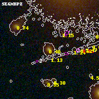 Object #4044 x,y = (2836, 1903) RA, Dec = (00:32:09.840, 18:07:17.04) = (8.04100, 18.12140) BPZ = 0.399 [0.293--0.436] type = 4.10 (Ell4_A_0 - ES0_B10) chisq2 = 0.07 ODDS = 0.75 z_cluster = 0.396