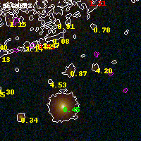 Object #4117 x,y = (2949, 1866) RA, Dec = (00:32:09.360, 18:07:14.88) = (8.03900, 18.12080) BPZ = 0.871 [0.604--0.973] type = 8.80 (SB2_B10 - SB1_B10) chisq2 = 0.50 ODDS = 0.55 z_cluster = 0.396