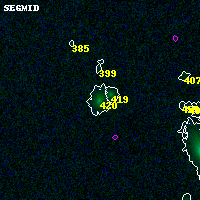 Object #420 x,y = (2094, 4263) RA, Dec = (00:32:12.960, 18:09:38.52) = (8.05400, 18.16070) BPZ = 0.379 [0.289--0.471] type = 5.30 (ES0_B10 - Sbc_B10) chisq2 = 0.01 ODDS = 0.77 z_cluster = 0.396